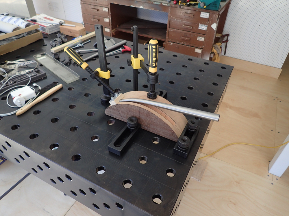 …is made by a company called Seigmund, as I said, in Germany. It’s perforated and modular and has all these clamps and brackets you can buy that fit the holes so that you can set up and work on anything that needs fixturing in any way. The table weighs right at a ton (850 kilos). It’s called the Professional Extreme 850, if that tells you something, and it’s made from “special” tool steel and is “plasma-nitrided and coated.”