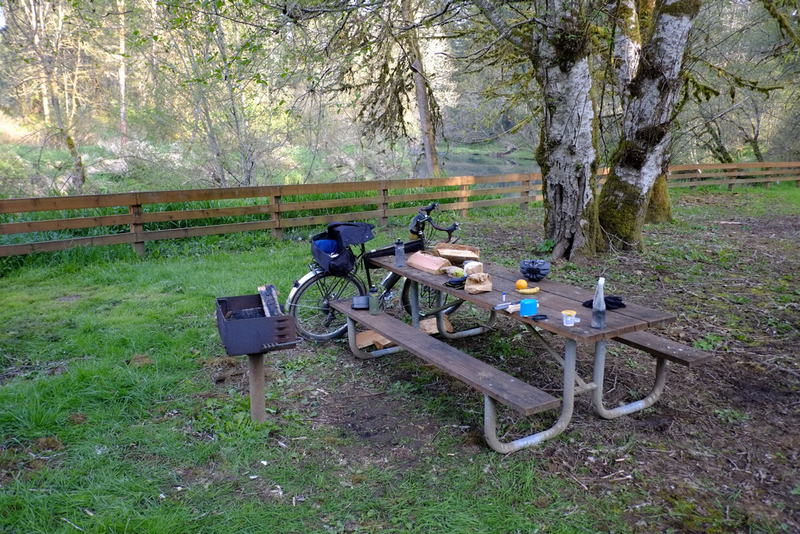 Some folks choose to get up early and ride all the way out to Astoria in one day. If you’re in shape for it, this allows you to pack light. There are enough places to pick up food and water along the way. I like to do this trip in two days. I’m not a hero, and besides, I wanted to camp overnight, kind of as a test run for future trips. The only way I can figure out what I’m doing wrong, and what I’m forgetting, is to get out there and do it. Kind of a reconnoissance mission for gear. And a trip like this has a low commitment. If I really botch it and forget to bring shoes or my sleeping bag or something, it’s not like I’m off on a multi-day adventure, or some big remote trip where my failures in packing gear will cause me great suffering or even death. It’s good to start small as a sort of practice for more intense bike trips. It boosts confidence, and reminds you who you are and how you can be. And it’s fun.