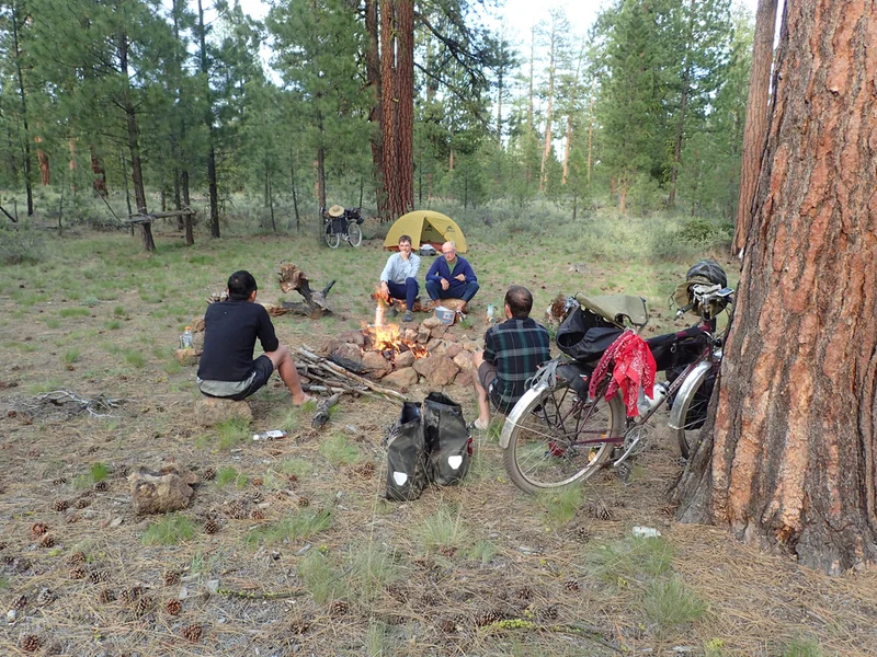 My friends and I struggled, yes, and there were fun parts, too: Screaming gravel descents, riding alongside running cattle, stream crossings (Jrdn and I both dumped into the water to great laughter), a deer that flew across our paths and leapt like a gazelle over a fence. And of course the shared time at camp. We saw regions of Oregon that are too vast and beautiful for words. And we all made it through safely. Riding back to Portland after the Deschutes campground, our trip ended up being around 450 miles total. Jrdn and Smitherman left Portland the week before a and rode down to Klamath falls to meet us, at least doubling their mileage. Because we left a week after the "official" ride, we only saw a couple of other people riding the route.