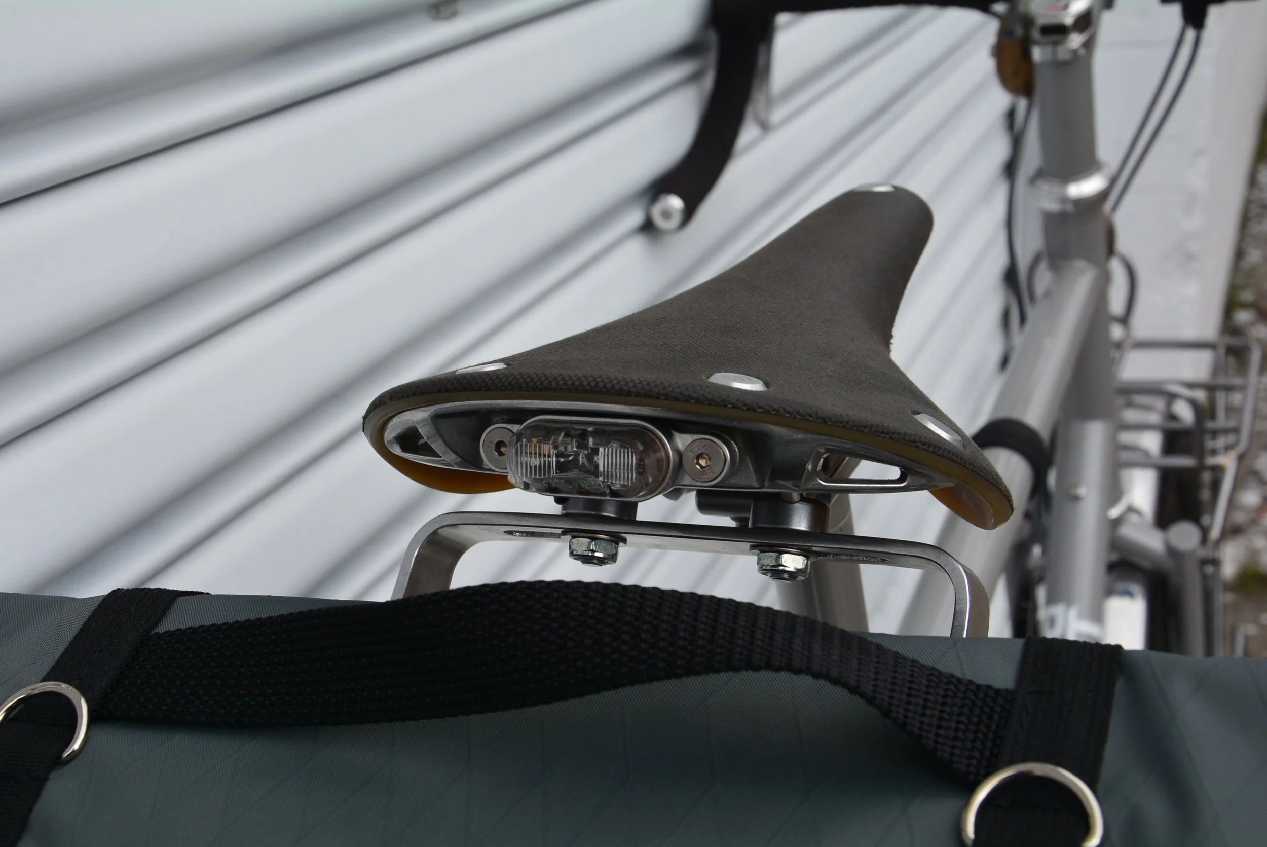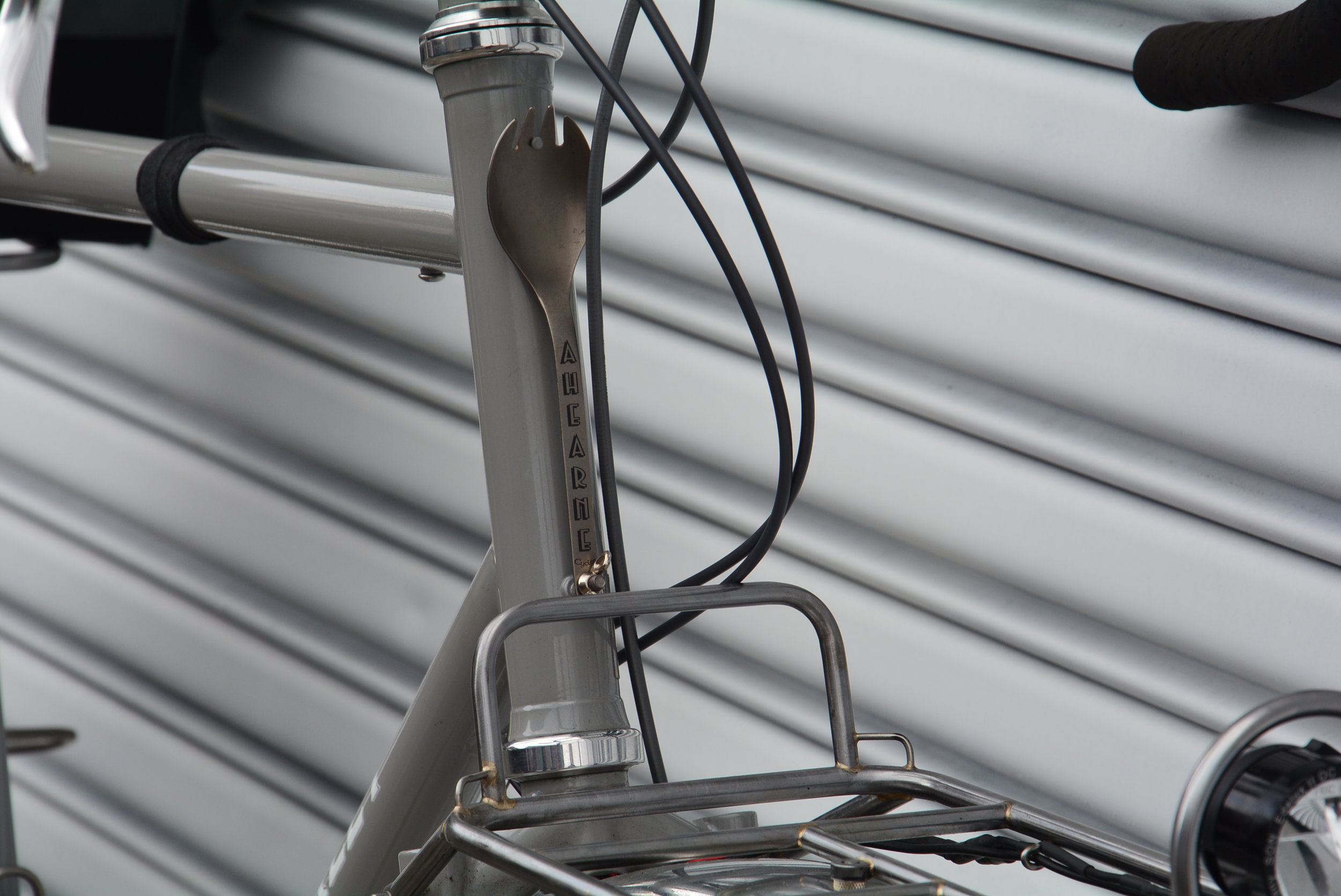 Bedsides Christopher, I’ve got a lot of people to thank for helping make such a rad machine, including Rolf Prima for the amazing Alsea wheelset, and Paragon MachineWorks for the Toggle Drops that make this whole bike work just right; Paul Components and the folks at Pinion who put up with all my questions. Marc at Gates Carbon Drive for technical support, supplying belt wheels and belt, and for caring for the bike in Las Vegas. Also, Ogando at Velogical and Jens who made the battery buffer (hidden in the steerer) and USB stem cap, the so-called Forumslader; Dave at Black Star Bags for the fabulous custom seat bag (we'll be offering these bags in the future). I also want to thank Dan at Co Motion Cycles for the shifter and the good advice on shift boss placement. And last but not least, I have to thank Kai Yao for all the awesome photos. My hope was to design something that could go everywhere and do everything. Nothing less. Whether we succeeded in building it or not remains to be seen. So far, it’s looking pretty good.