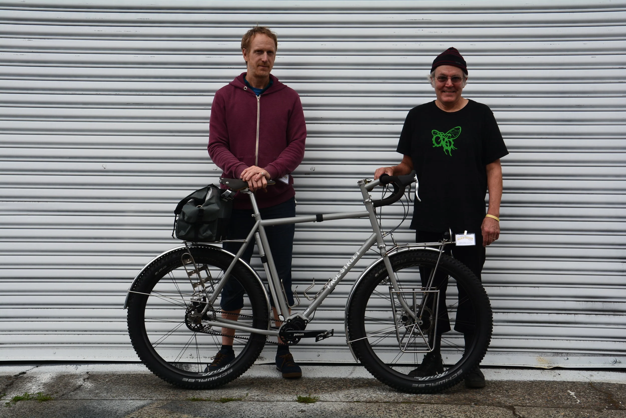 And it’s the latest variation on a bike we fondly call the “Outback.” The Outback is kind of generic name for an off-road touring bike. You can call it a bike camping bike, or bike packing bike, or anything else you want. We call it an Outback Bike. It’s meant to run fat tires (in this case 650b or 27.5" X 2.8" tires) and carry gear so you can head off and away from paved roads onto gravel and single track, ATV trails, old rail beds, beaches, whatever — anywhere at all that cars can’t or usually won’t go.