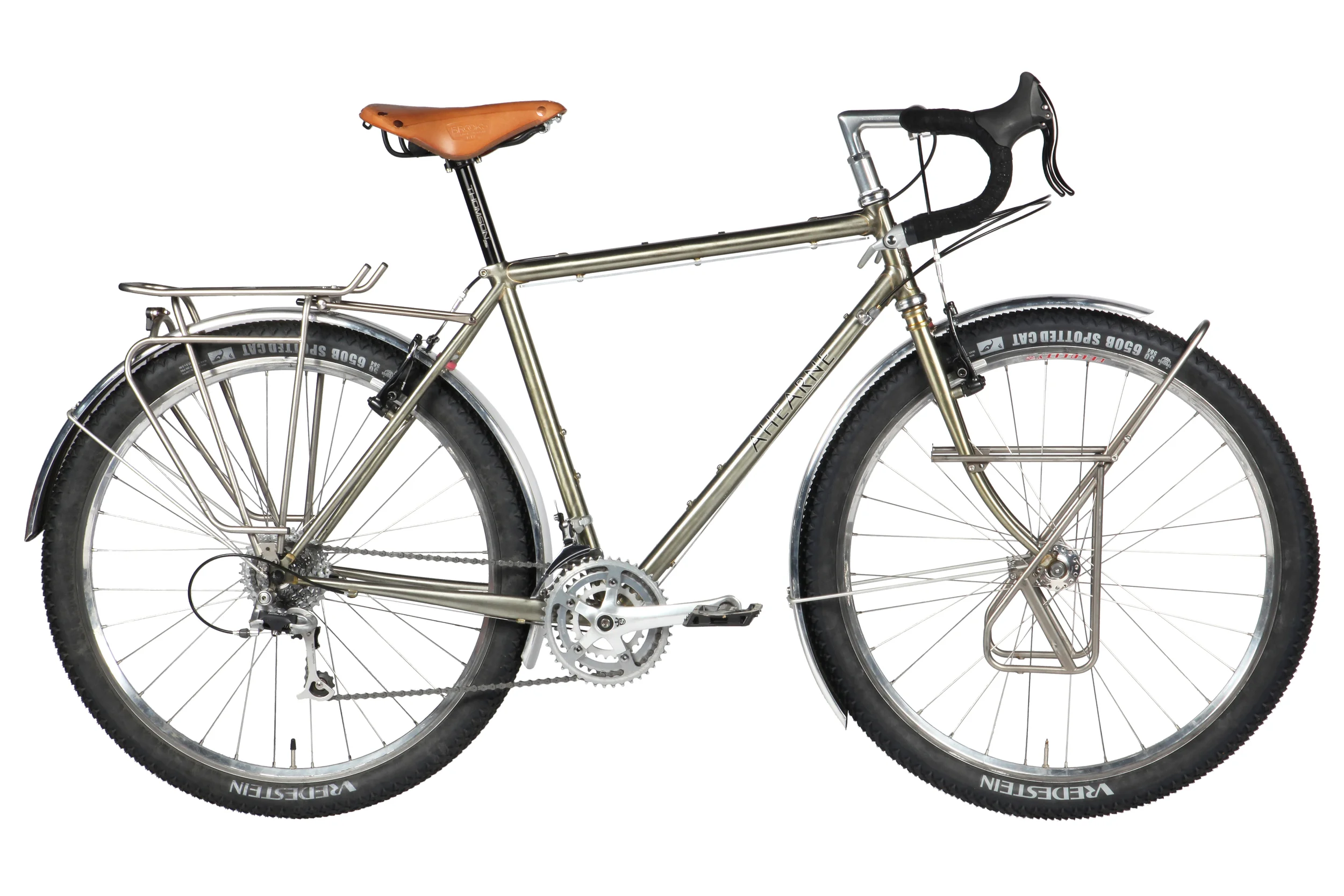 And it’s the latest variation on a bike we fondly call the “Outback.” The Outback is kind of generic name for an off-road touring bike. You can call it a bike camping bike, or bike packing bike, or anything else you want. We call it an Outback Bike. It’s meant to run fat tires (in this case 650b or 27.5" X 2.8" tires) and carry gear so you can head off and away from paved roads onto gravel and single track, ATV trails, old rail beds, beaches, whatever — anywhere at all that cars can’t or usually won’t go.